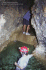 making our way through the cave involves climbing over rock, crawling under rock and wading through water.... the water level is at it's lowest at this time of year, but it is still deep enough in certain places to require swimming or else climbing around or over... the FLASHBACK to 1999 expedition shows this cavern with water in it.... notice the high water mark on the wall is above the guys head !