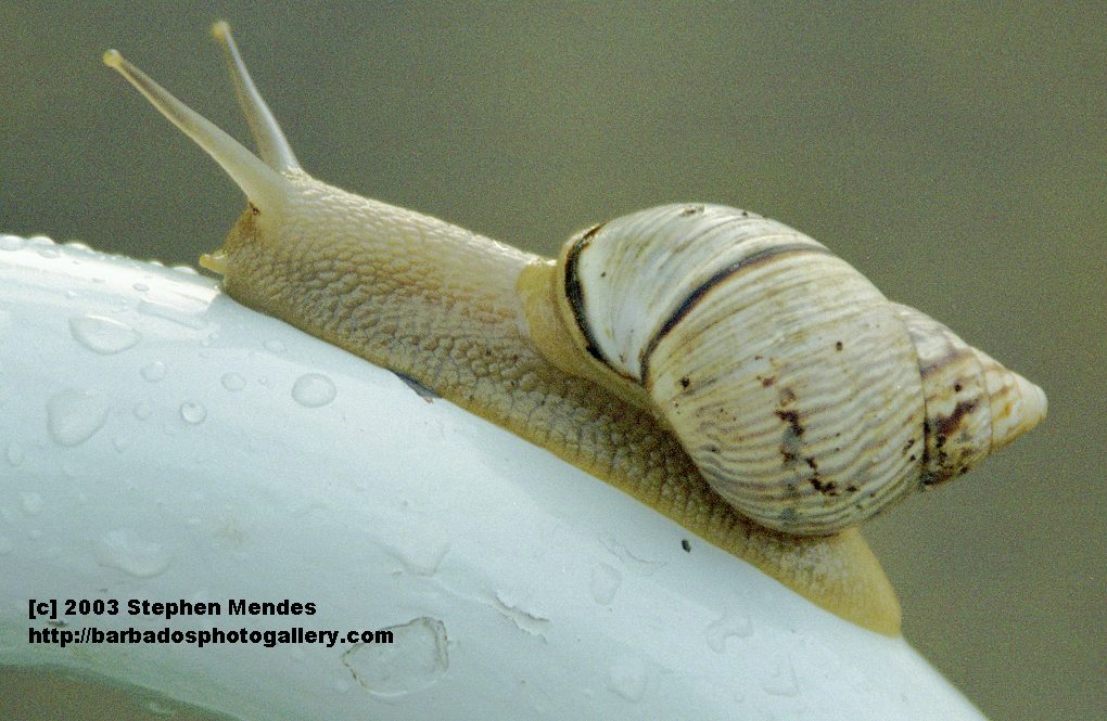 This Bajan Snail (up close and personal)..... symbolises the way webmaster has been updating your photos recently... painfully SLOW