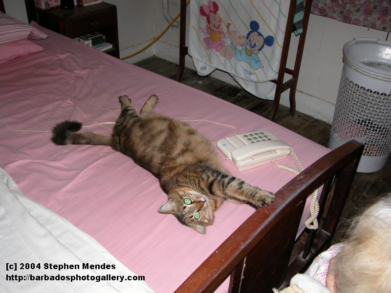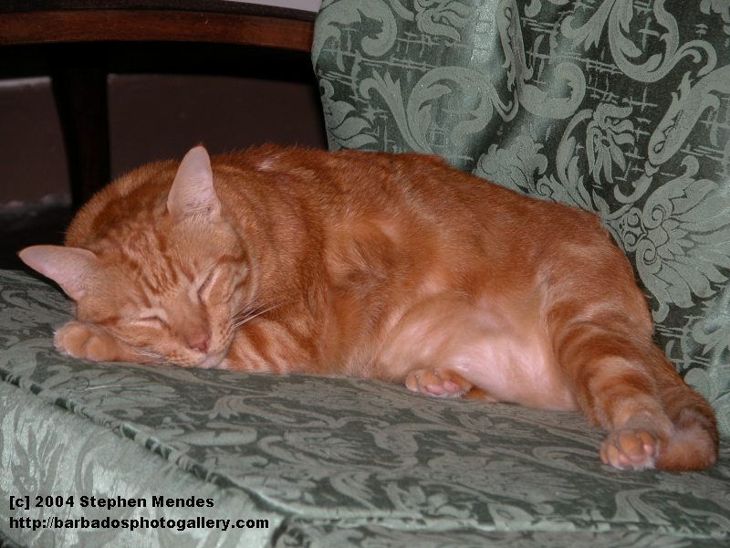 This is Marigold.... Marigold hair is always dropping out..... so my wife feeds her homones.... and she eats and eats and eats.... you should see her when she comes through the kitchen window and jumps onto the counter... brug-a-dung.... she so heavy that she broke the wooden support.... it truly pathetic... but what can I do ?