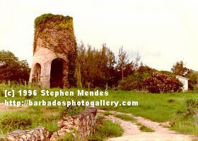 As you drive around the island, you will see many sights like this one. These crumbling towers are the remains of windmills that played a prominent part in the island's sugar production in the 18th and 19th century. |