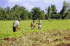 crossing an ancient bridge in the wilderness.... workers in the fields, fascinated with our caravan